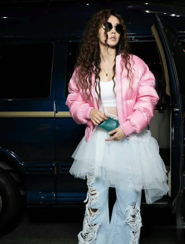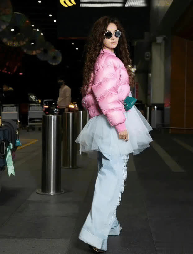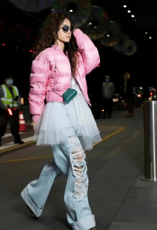 蔡依林烫羊毛卷带火秋冬穿搭:羽绒服+纱裙+牛仔裤,超洋气